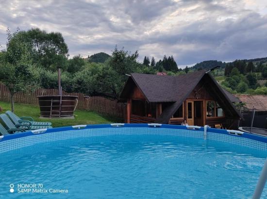Oferim cazare într-o locație retrasa și liniștită, deținem o sala mare de petrecere cu baie de serviciu, bucătărie complet mobilata și utilata, iar în exterior va puteți relaxa în foișor la un grătar, la ciubar cu apa calda sau la piscina.